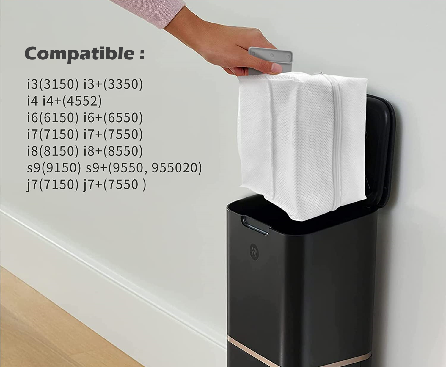 Compatible: Compatible with IRobot Roomba i3(3150) i3+(3350), i4 i4+(4552), i6(6150) i6+(6550), i7(7150) i7+ (7550), j7 j7+(7550), i8(8150) i8+ (8550), s9(9150) s9+(9550, 955020), i and s Series, the package contains 2 zipper dust bags.
