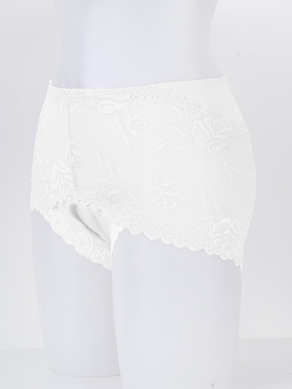 Women See-through Lace Patchwork Panties Mid Waist Crotchless Briefs Elastic Waistband Underwear.