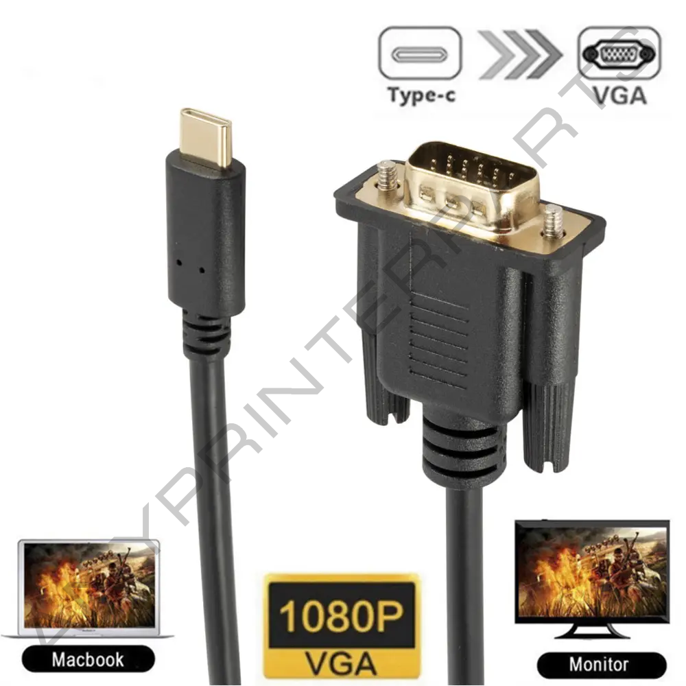 USB C To VGA Cable 1080P Type C To VGA Converter Adapter Cable for Laptop UHD External Video Projector 1.8m