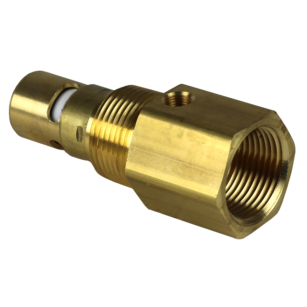 This 1" NPT brass in-tank check valve is designed to prevent air backflow from your tank to the compressor pump, helping maintain system pressure and prolong equipment life. Commonly installed directly into the compressor tank, the female NPT end connects to the compressor's discharge line, while the male NPT threads into the tank itself. An integrated 1/8" female NPT side port allows for an unloader valve connection—typically routed from your pressure switch. If your application does not use an unloader, the port can easily be plugged.