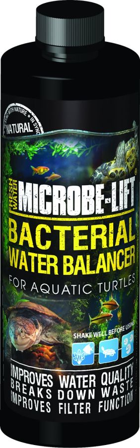 The Microbe-Lift Aquatic Turtle Bacterial Water Balancer will naturally decreases organic waste on your ornaments, gravel and filter systems while also plummeting or even removing pathogenic bacteria. This is possible by adding beneficial bacteria into your turtles environment with this formula. This formula also reduces turtle loss, helps to clean your power filters and decreases aquarium maintenance.