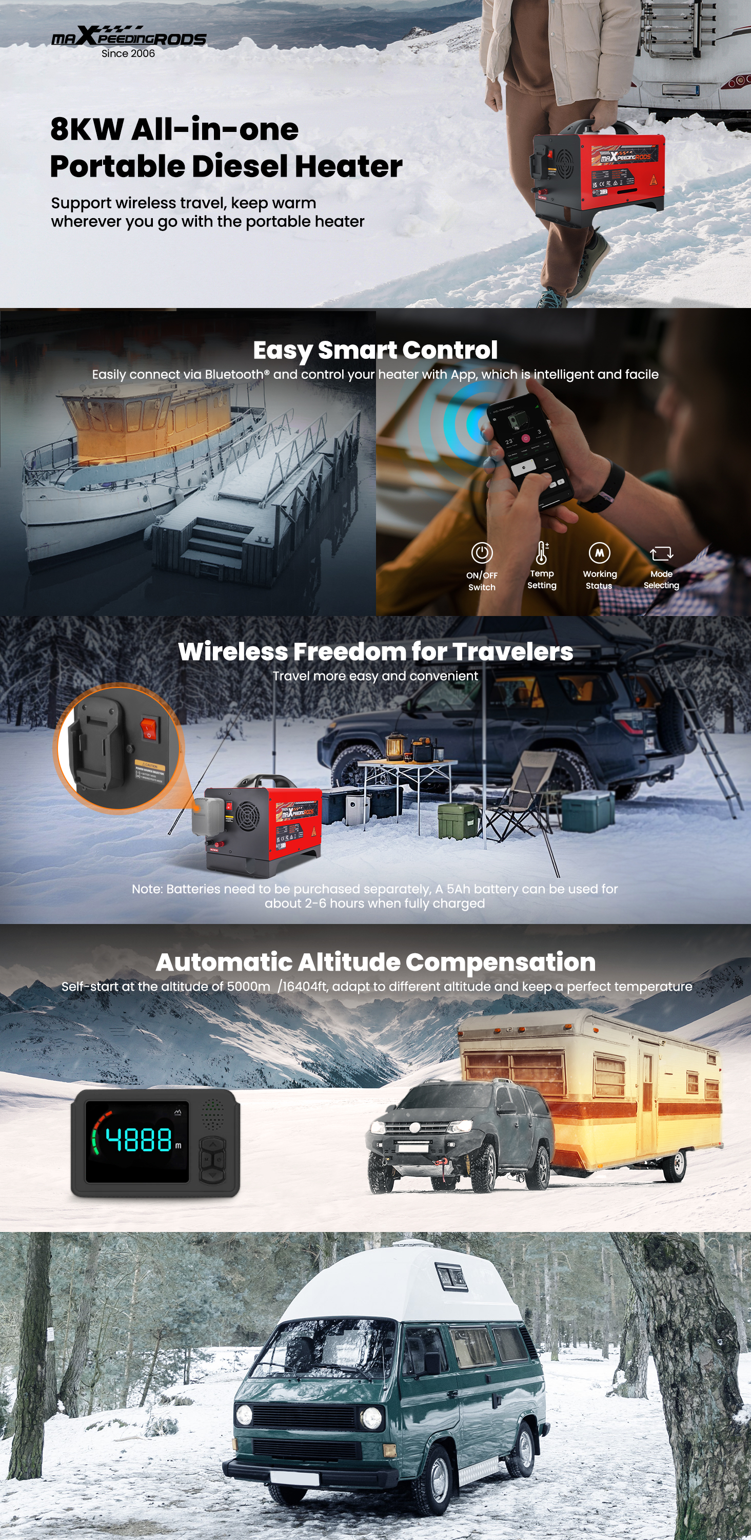 Restez au chaud dans la tempête hivernale misérable avec Maxpeedingrods Air Heater, ont seulement besoin d'alimentation 12V travailler dans des températures extrêmes. Notre réchauffeur d'air est sans friction, contrôle automatique de la température ambiante avec possibilité de présélection de la température. Il est adapté aux longues périodes de fonctionnement avec une faible consommation de carburant et d'électricité.