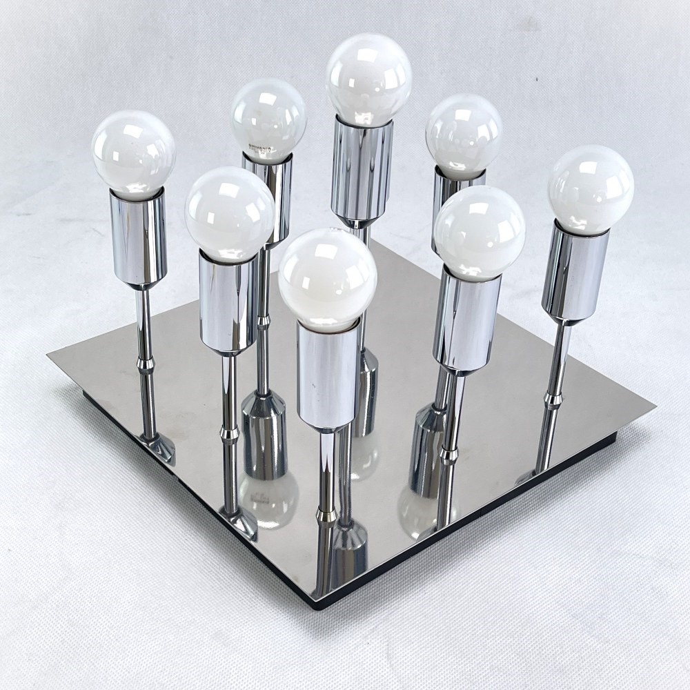 Die Gebrüder Cosack Deckenlampe aus den 1970er Jahren sind ein exquisites Beispiel für das zeitgenössische Design dieser Ära. Mit ihrem chromglänzenden Finish strahlen sie einen eleganten Glanz aus, der perfekt zu einem Lounge-Stil passt.