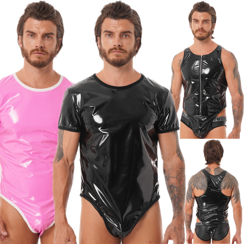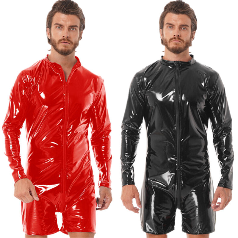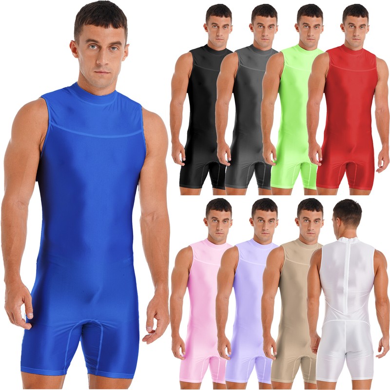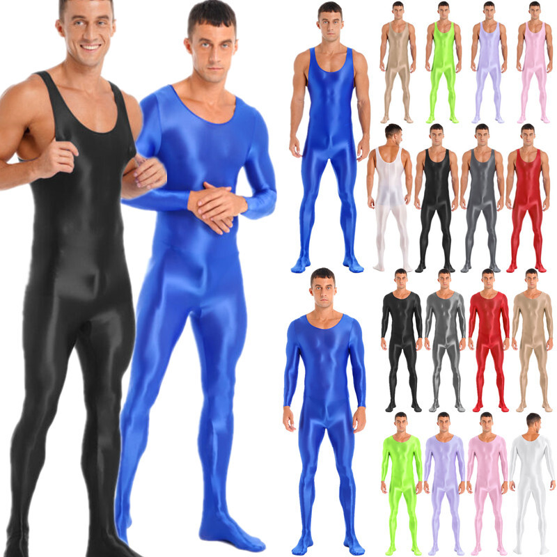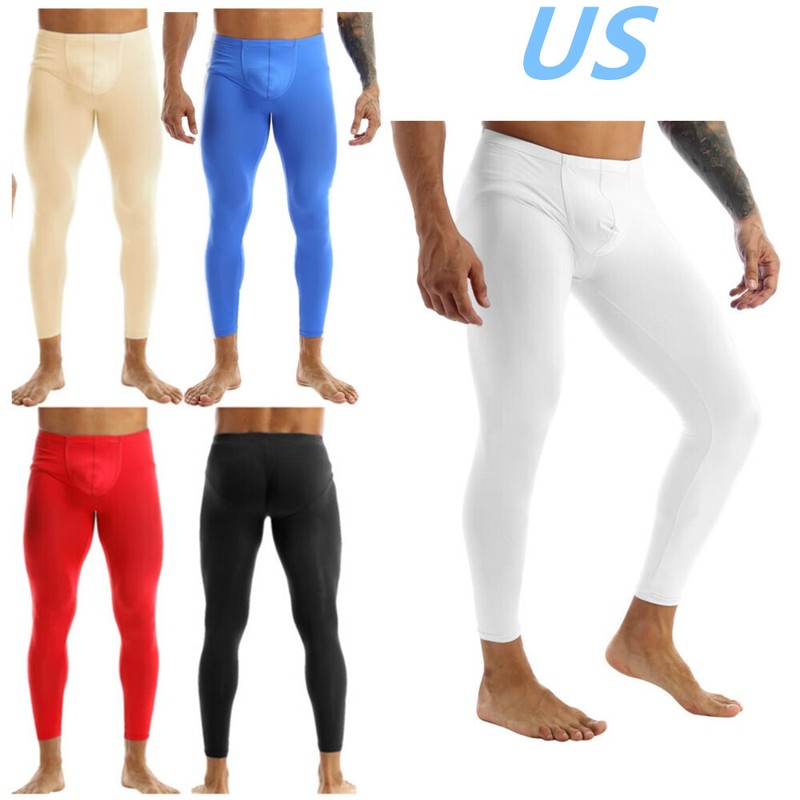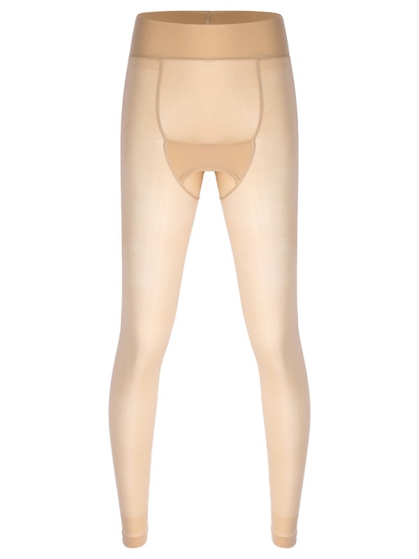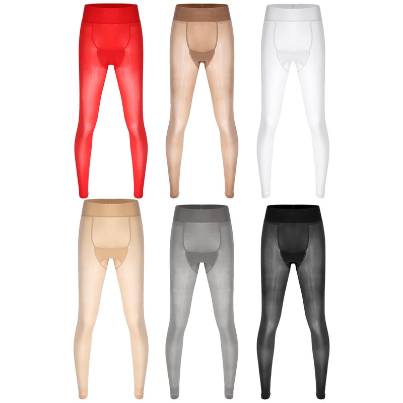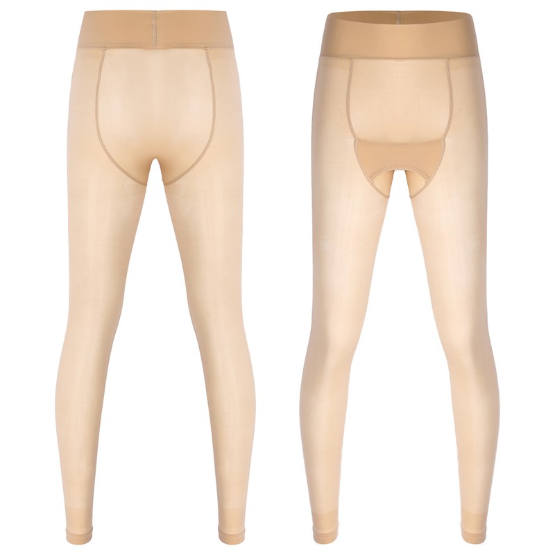 Solid color leggings for men, glossy surface, front fly opening, enhance overall comfort.