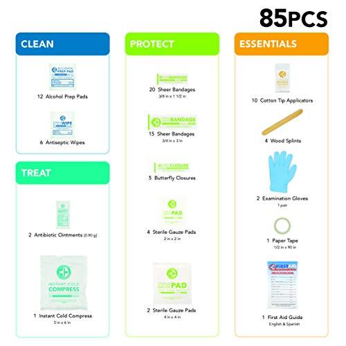 - Manufactured by the #1 leading manufacturer of First Aid Kits in the USA. 85 pieces of comprehensive, medical grade first aid treatment products.