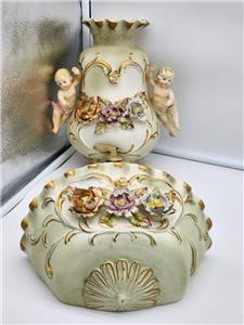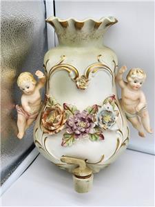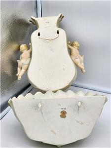 MID CENTURY COLOR Ceramic 3D Cherub Floral Wall Pocket DUAL Vase ARDALT ARTWARE HAND PAINTED JAPAN