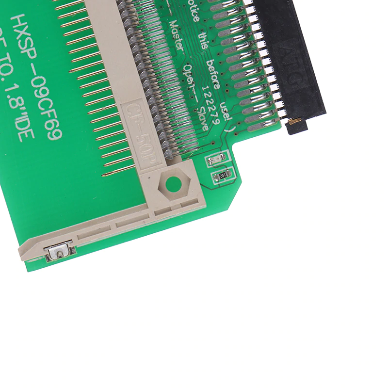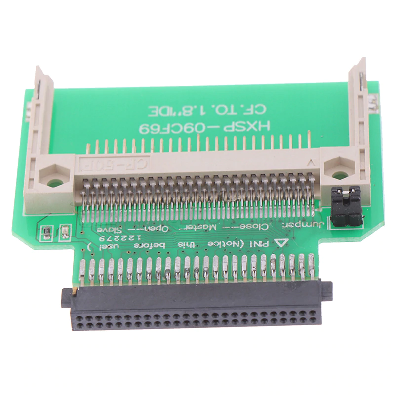 Compact Flash Memory Card to 50pin 1.8 Inch IDE Hard Drive SSD Converter Adapter It is stable and doesn't have any noise and vibration. CF memory card has the low extent of the damage. You have to format with FAT32 when you install OS on the CF memory. Master/slave setting jumper.