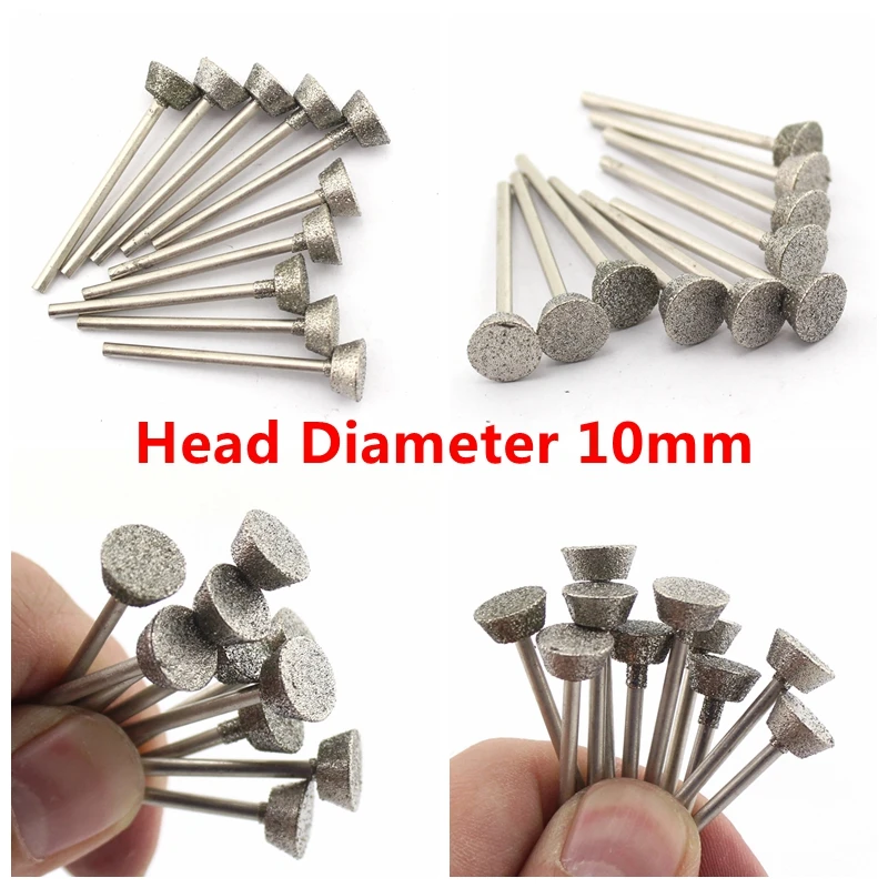 JINGLING 10Pcs 3-10 mm SHORT INVERTED CONICAL Diamond Grinding Head Lapidary Carving Tools Code 30E/40E/50E/60E/80E/100E*2.35mm