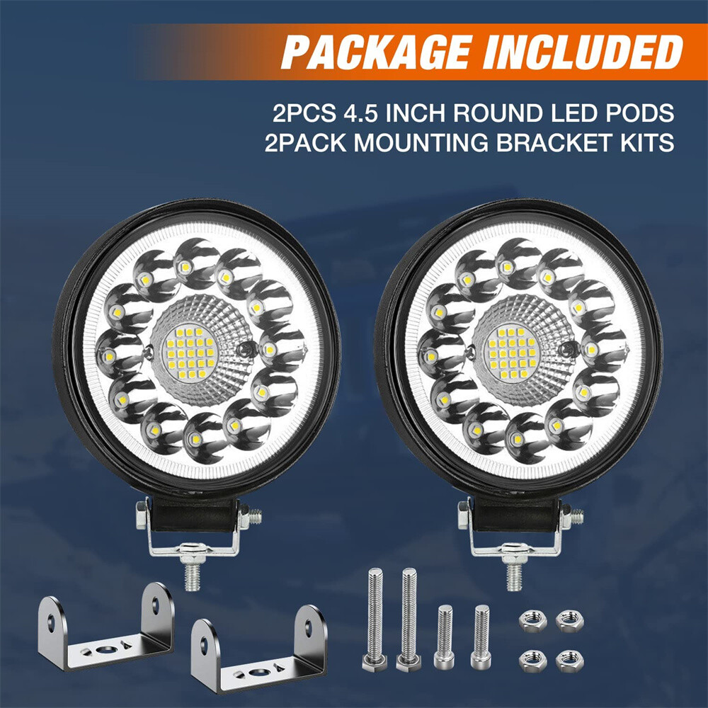 WIDE APPLICATION: 4.5" LED round light bar with working voltage DC 10-24V, suitable for most 12V/24V vehicles, such as off-road, heavy truck, SUV, ATV, UTV, truck, car, E- Bicycles, boats, etc.