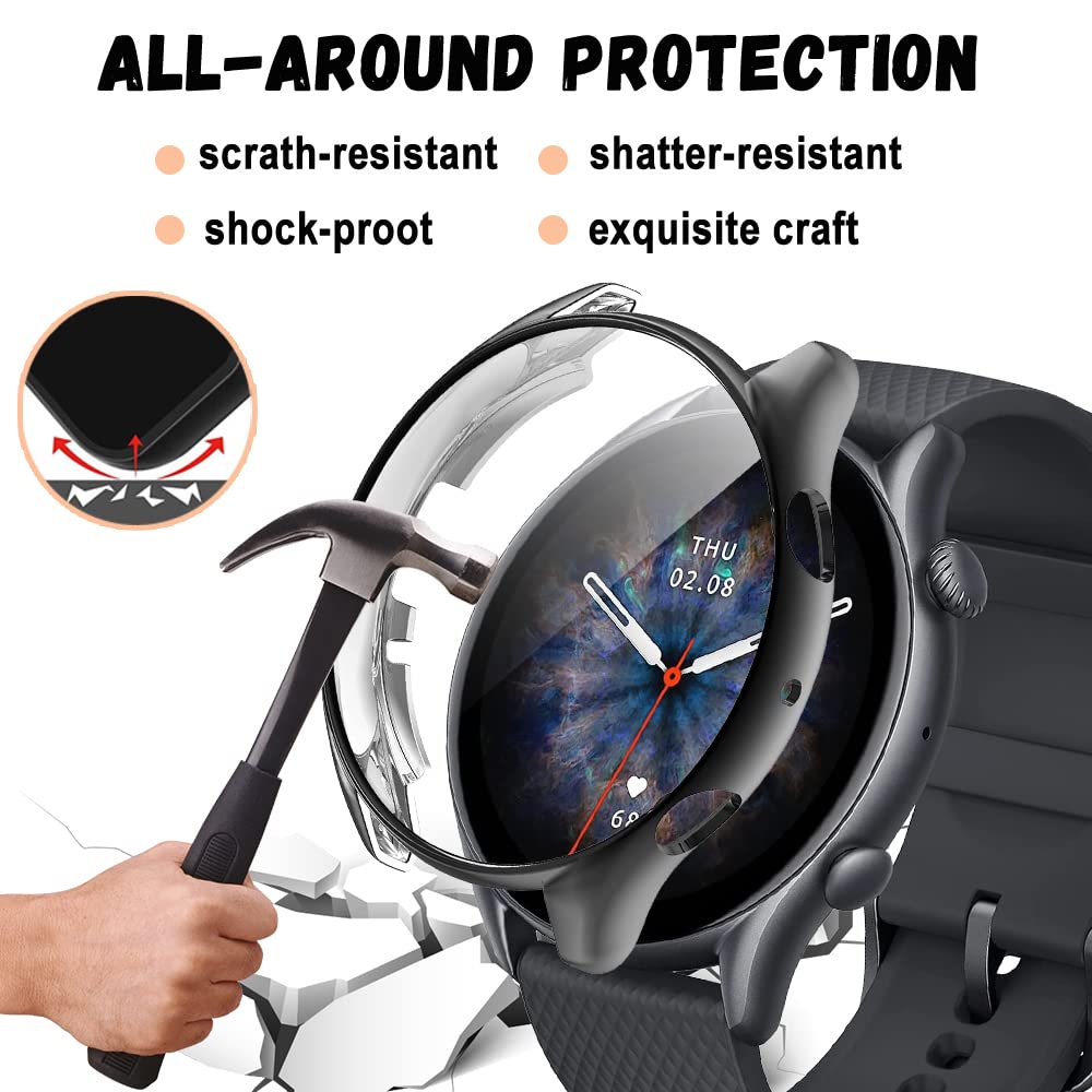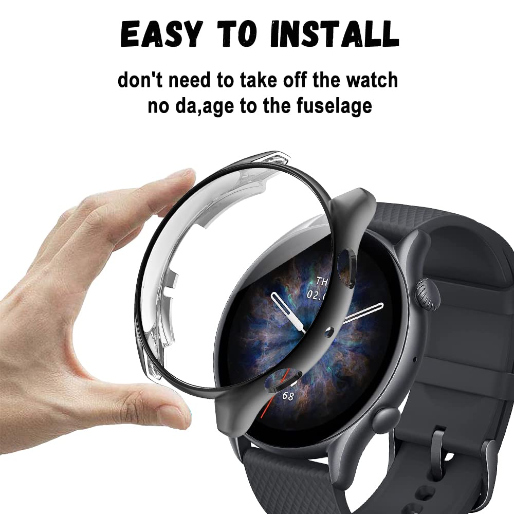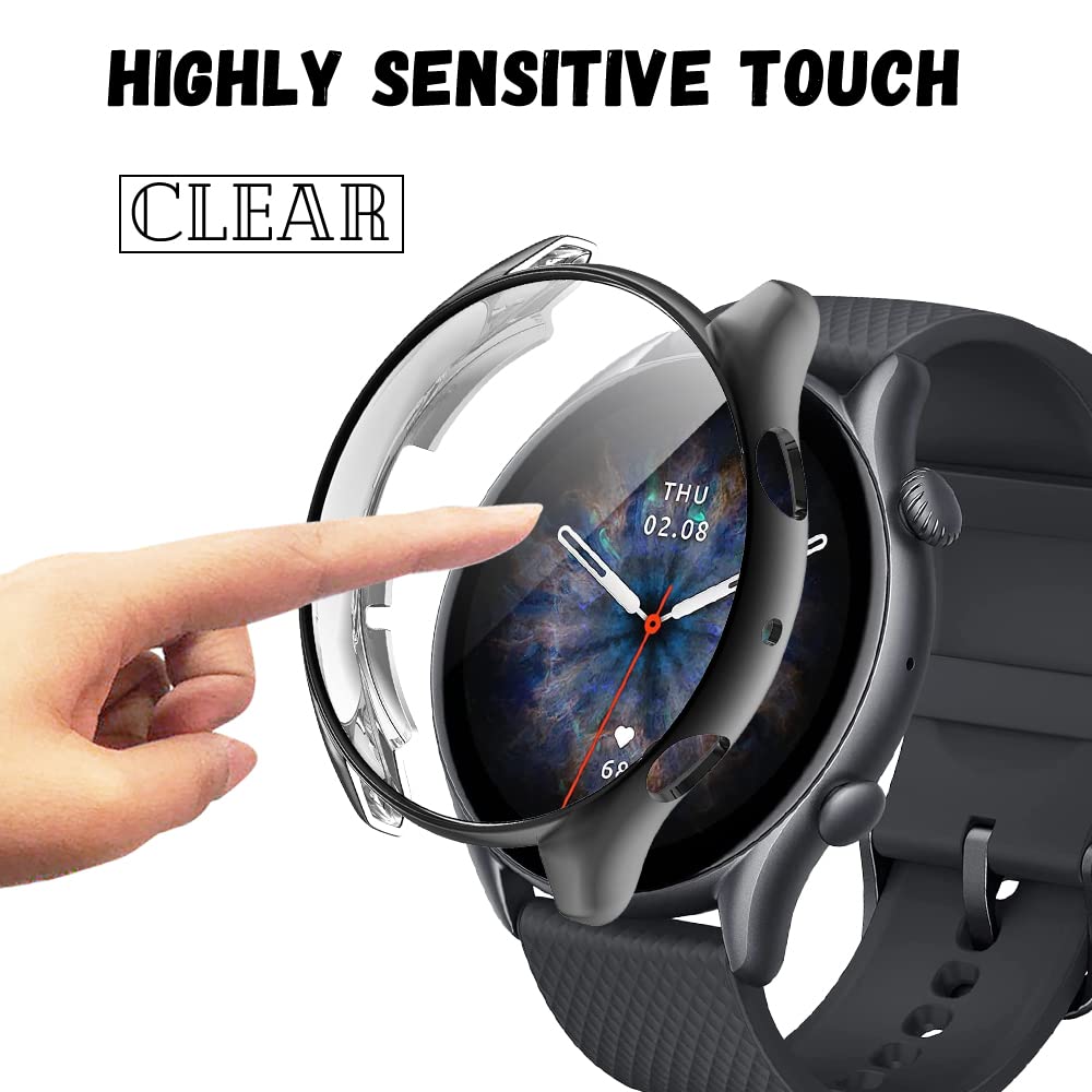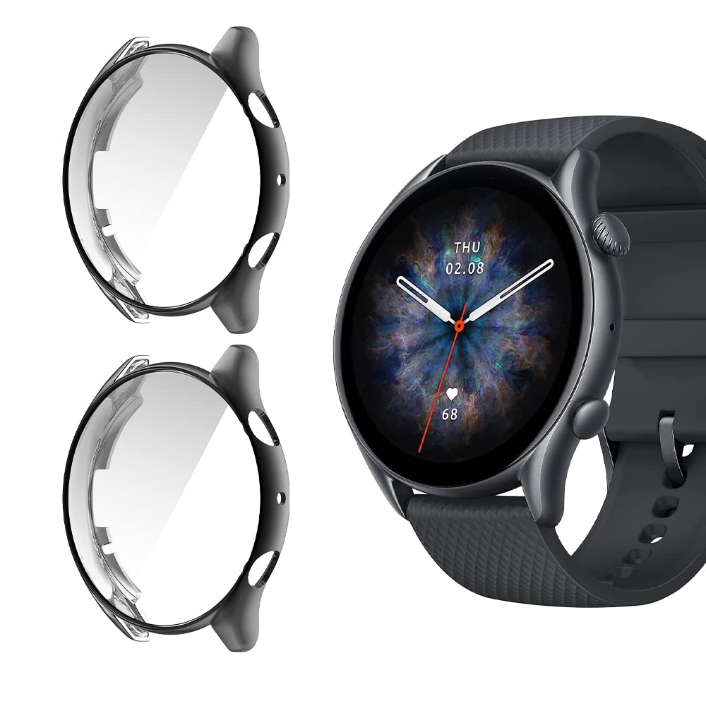 Niboow Cover [2 Pezzi] Compatibile con Amazfit GTR 3/Amazfit GTR 3 Pro, Con Pellicola Protettiva, Protezione Ultra Sottile TPU Custodia, Morbida Custodiain per Amazfit GTR 3/GTR 3 Pro-Nero+Nero