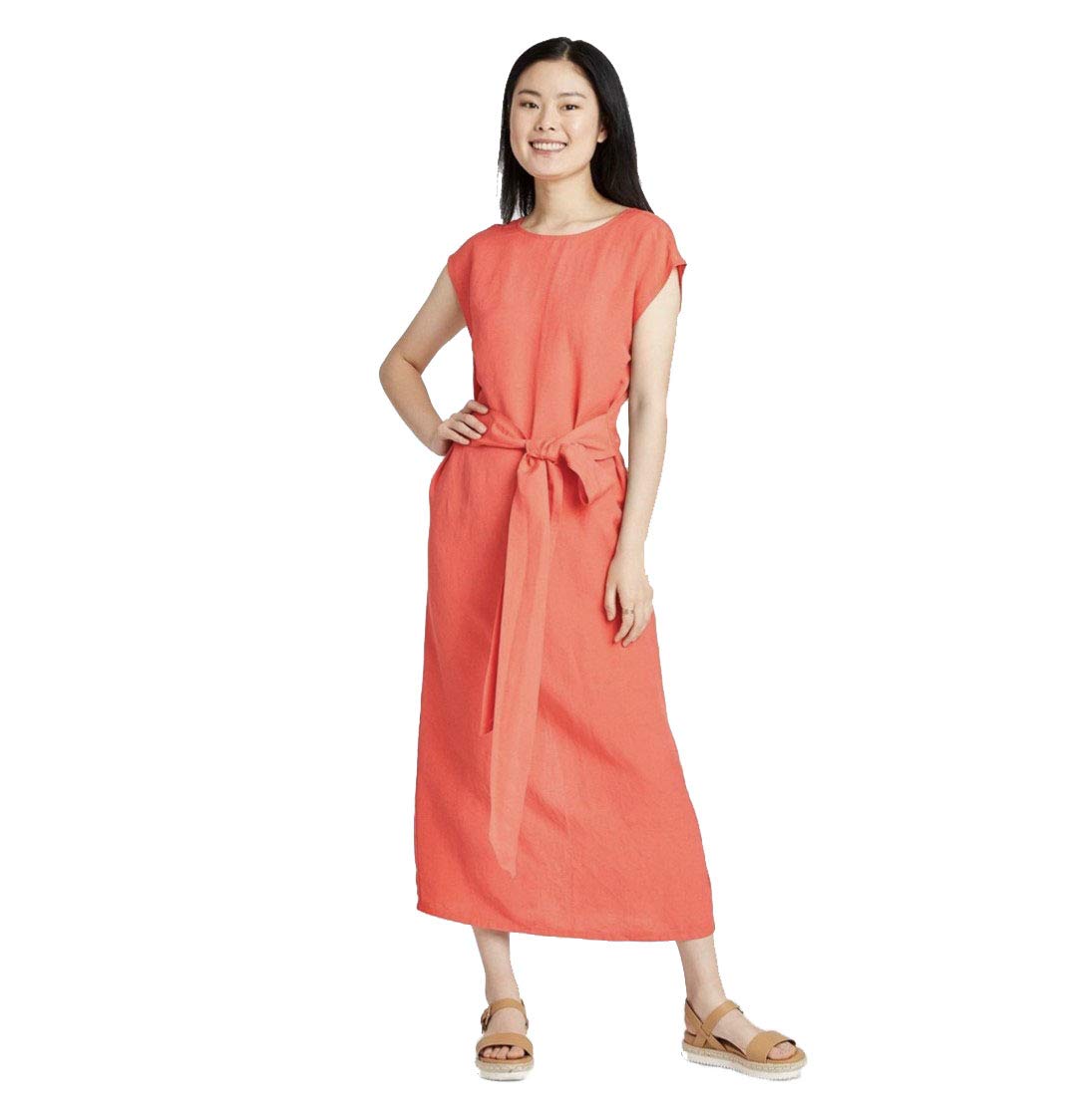 Introducing the A New Day Women's Short Sleeve Tie Waist Dress in the vibrant Coral color, available in size XSmall. This dress is a perfect choice for adding a touch of elegance and femininity to your wardrobe.
