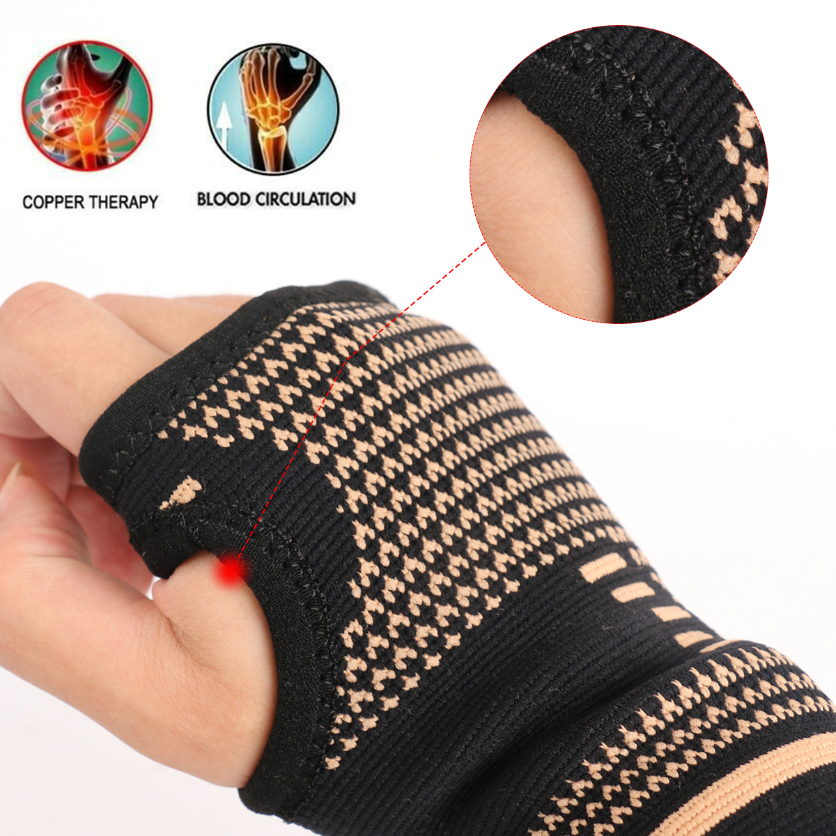 copper nylon fabric in our compression wristband stimulates blood