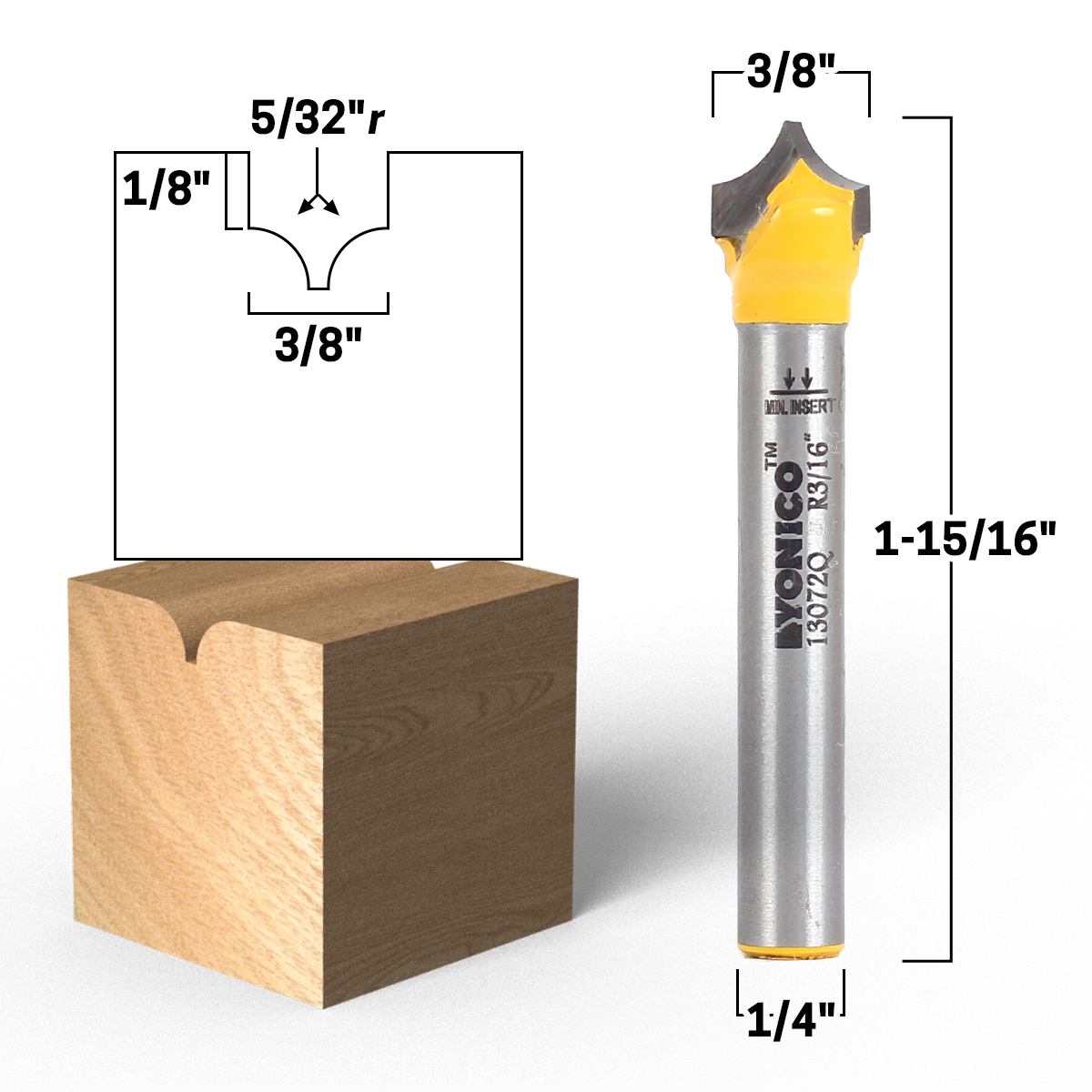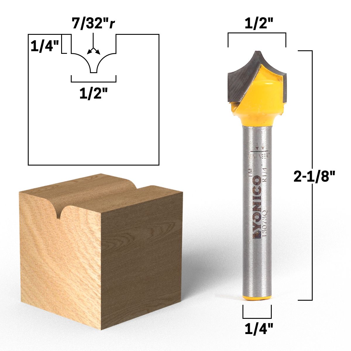Point cutting roundover bits allow you to place a roundover profile or groove in just about any location on your workpiece. These are great for MDF cabinet doors and for beading detail on columns and moldings. The blade is a single piece of C3 micro-grain tungsten carbide which is sharpened on either side for true plunge and CNC capabilities.