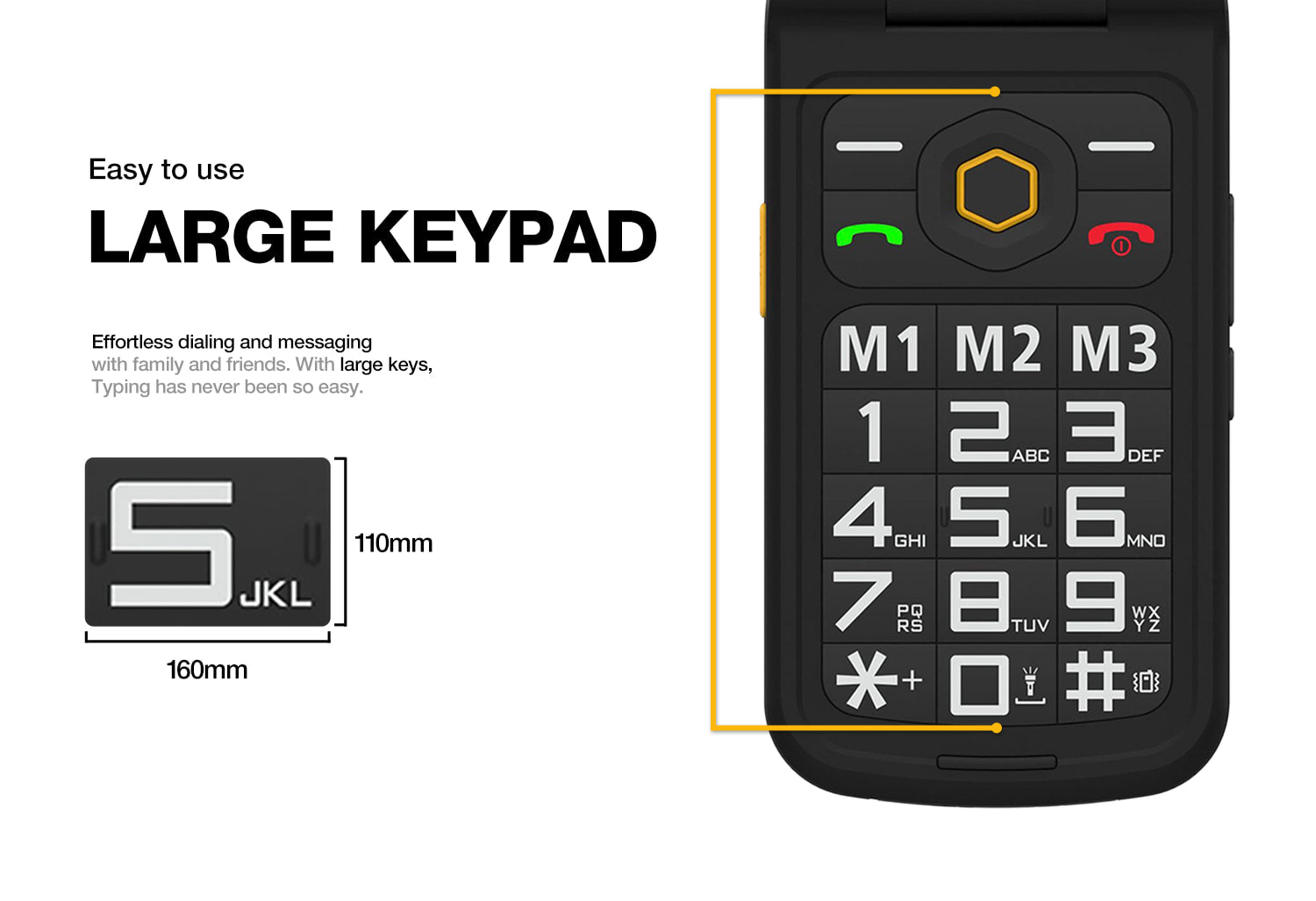 BIG BUTTONS and large, legible numbers, Easy to Use Flip Phone