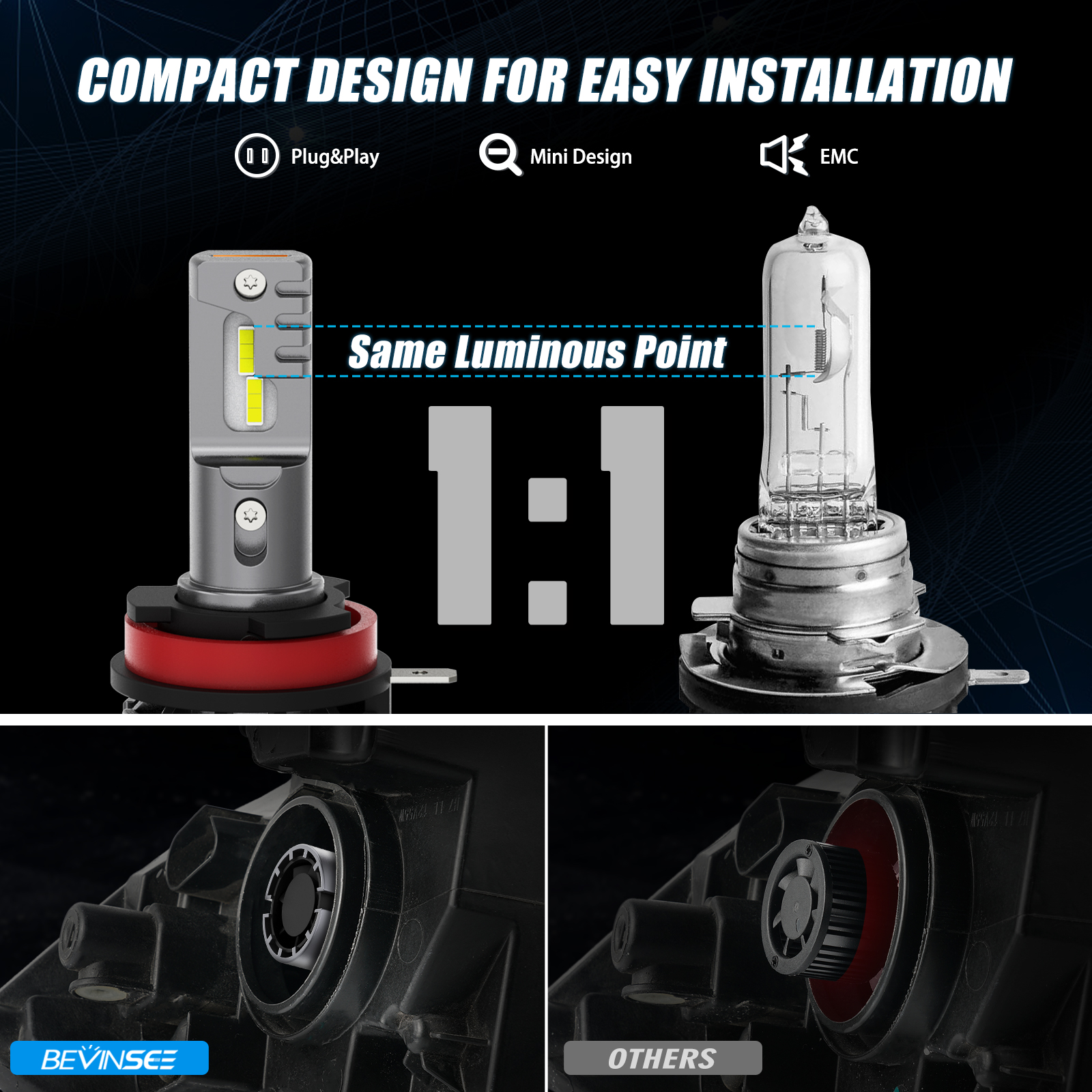 1. As a safety precaution, make sure that the car has had time to cool down properly before starting the installation process.2. Put the vehicle into park or make sure it is securely in gear. 3. Make sure to have the ignition turned off and the keys removed. 4. Be careful to avoid burns, especially when turning on or off the vehicles lighting. 5. Be careful to avoid crushing or cutting the bulbs. Also make sure to not touch the bulbs with your fingers, as this will cause blotting. 6. Fully examine the connection of the contact points, ports and the wires as faulty connections can cause lighting problems. 7. Make certain that the end of the bulb does not come in contact with the interior light shield of the headlight when adjusting the bulb. 8. After installation, dust prevention measures must be done, LED lamp life depends on the cooling performance is good or bad. The lamp heat mainly active cooling (fan-cooling based, supplemented by the whole aviation aluminum heat dispassion ) as the main cooling method, the life of the fan in lamp bulb directly affects the life of LED lights. Q1: Will the bulbs suitable for my vehicle? A:1. If you are not sure about your bulb model, please check the ebay fitment as the instruction above. 2. Check the owner's manual, or better yet, physically inspecting the bulb in the vehicle beforehand. 3. Contact us with your vehicle make/model/year via eBay message to ensure you get everything you need for your kit! Q2: What if I encounter a dashboard error message or flickering? A: All the Bevinsee LED headlight bulbs are designed with plug and play, and CANBUS ready. While there are a few sensitive vehicles might occur an error or flickers. The warning Canceller solves this problem. Q3: Neither side lighting up? Both sides flicker, flash, or work inconsistantly. A:Pls kindly Check the headlight fuses, and then check the ballast plugs to insure correct installation. If this doesn't work, your car may need a relay or resistor. Q4: How to get the best light output? A: When the LED CHIPS are facing left and right(3-9 o'clock) direction and the lamp body stays vertical at 12-6 o'clock direction, you will get the best light output. Please check out the installation video on the product detail page. Q5: What should I do if there is a quality problem? A: Please send ebay message to us, we will solve any problems for you as soon as possible. Q6: The bulbs doesn't fit my vehicle. A:1. The bulbs size maybe wrong, pls double check before order. 2. For some socket, such as H1, H3, H7, special bulb holder may be required. Pls send us the photo of your bulbs, bulb socket, and we will check for you. Q7: Warrning about polarity A: Please kindly check the polarity when connecting the plug. If the LED bulb does not light up or work properly after installing, please flip the plug around to reconnect. DISCLAIMER