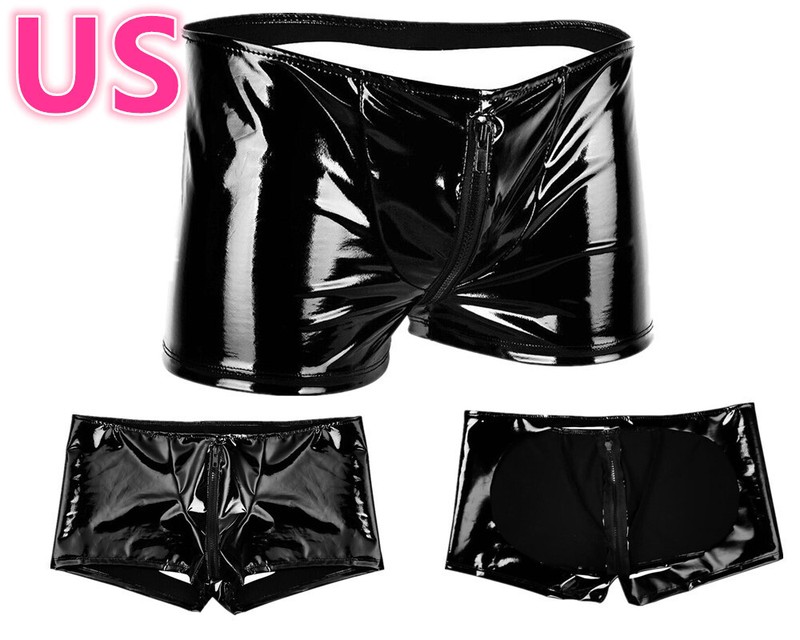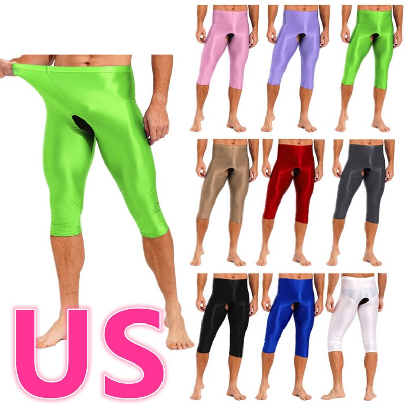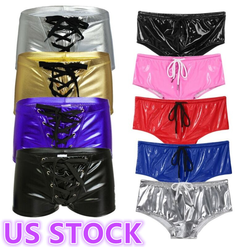 Mens Elastic Waistband Satin Shorts Underwear Mid Waist Side Split Boxer Brief.