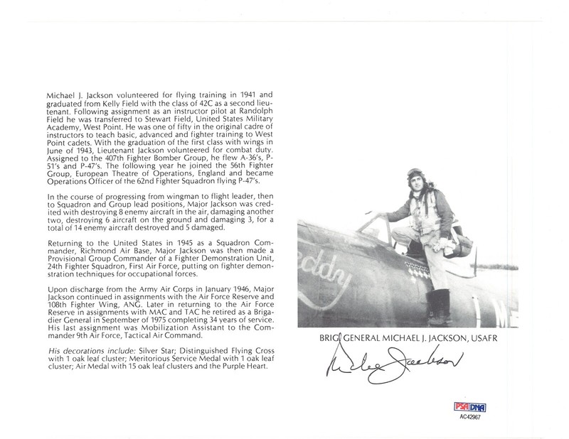 MICHAEL JACKSON SIGNED 8X10 (D) PSA DNA AC42967 WWII ACE 8V