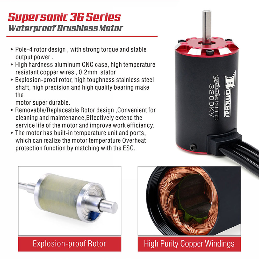 Rocket 3660 Brushless Motor 4250KV 3600KV 3200KV 2800KV w/Temp Sensor for 1/8 1/10 Tamiya GTR Traxxas RC Drift Racing Off-road Car