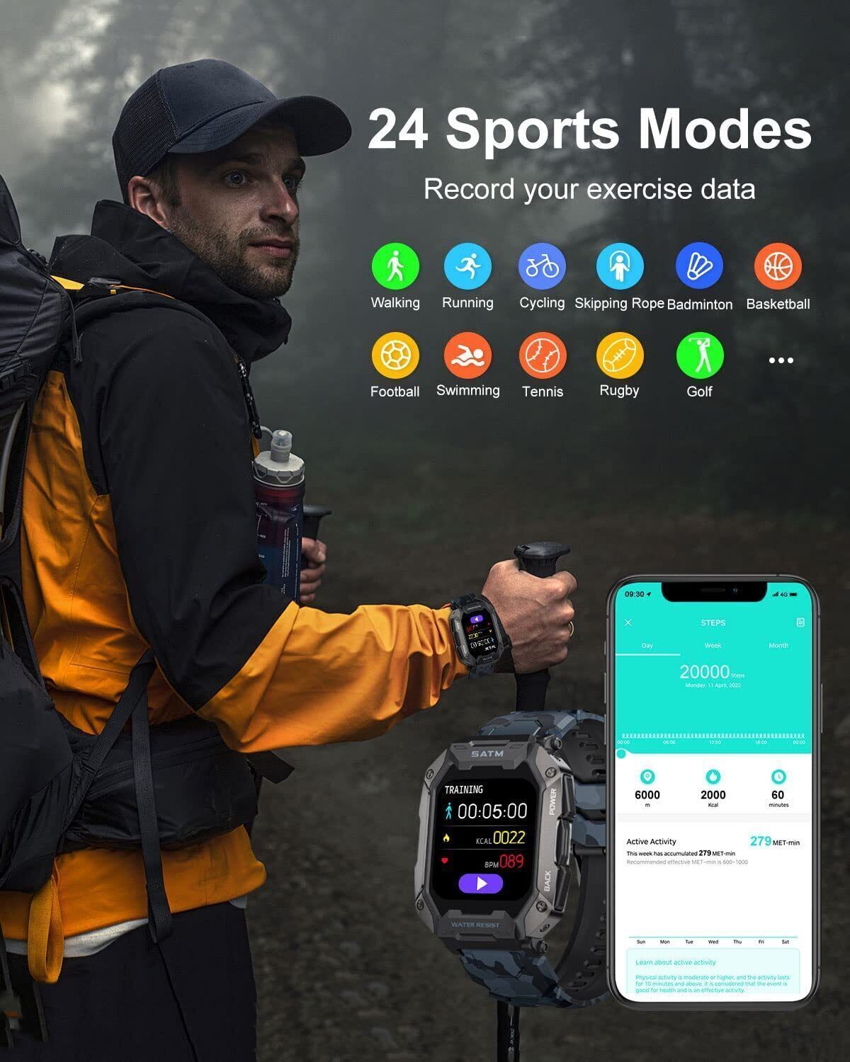 Mens smart watch supports more than 24 sports modes,such as running,swim, playing, yoga, golf, football, basketball,