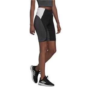 Break from your routine. It's fun to spice up your workout, and these adidas tights get in on the action with contrast colours that make them far from your average tights. Curved cut lines make the colours pop more while also flattering your shape. No matter what the day's training session looks like, the shorts are down for it all with moisture-absorbing AEROREADY to keep you dry. The high-rise waist smooths and supports your core, so you can move without distraction.