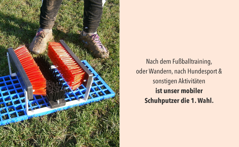 Schuhabstreifgitter für die Erstreinigung der Sportschuhe bei schlechtem Wetter Wetterfester Gitterrost für den mobilen oder fest eingebauten Einsatz Auf den Gitterrost sind 3 hochwertige, austauschbare Bürsten montiert Stabil und langlebig Kann fest montiert oder mobil eingesetzt werden Maße: ca. L 50 x B 30 x H 20 cm Farbe: blau/rot
