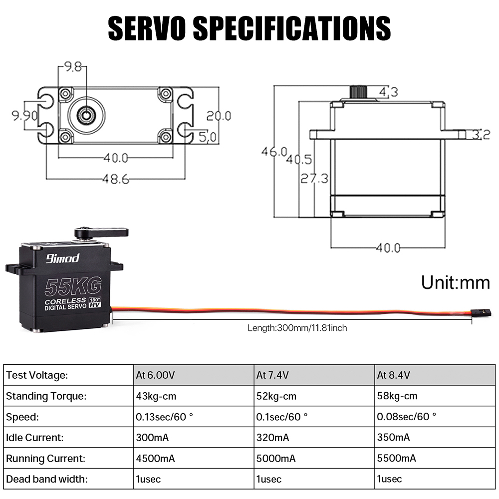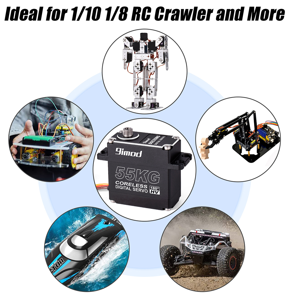 The 9imod 55kg waterproof digital servo with better heat dissipation, more power and strong adaptability. Light weight, high-speed big torque, sensitive, responsive, low noise. It is a good choice for novices and professionals who are interested in DIY parts, will help you control the model better.