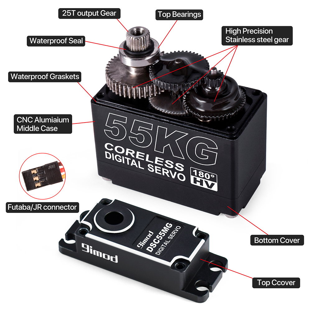 1. High Torque Servo: DSC55MG 55KG 180/270 degree HV coreless metal gear waterproof digital servo.