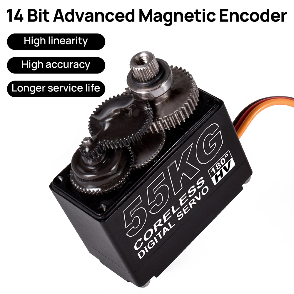 9imod 55kg Waterproof Servo IP67 180/270 Magnetic Sensor High Torque High Voltage Coreless Digital Servo Full Metal Gear for 1/8 1/10 RC Models Car Boat DIY Parts