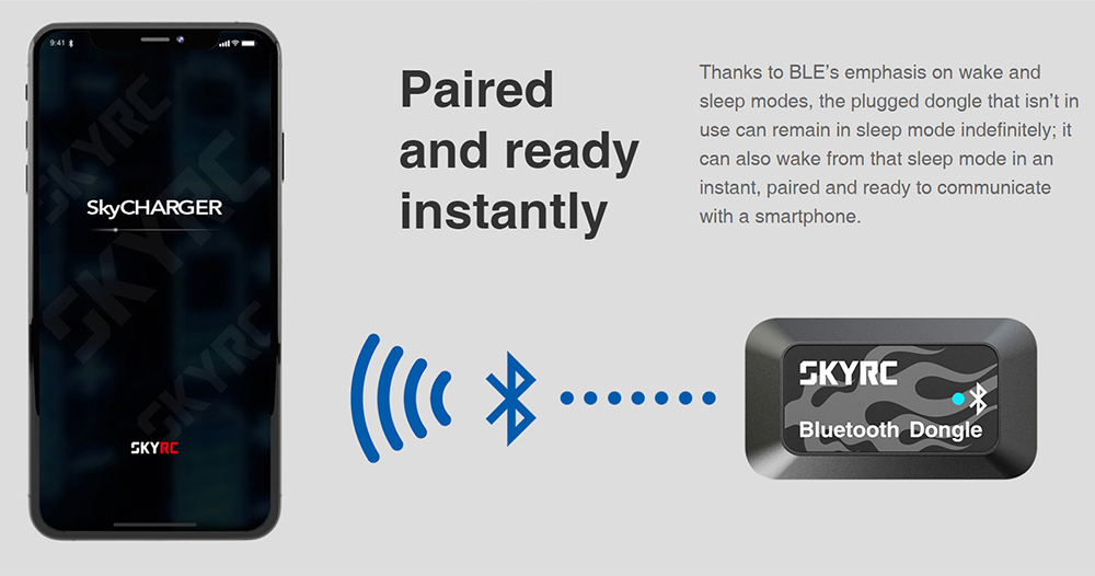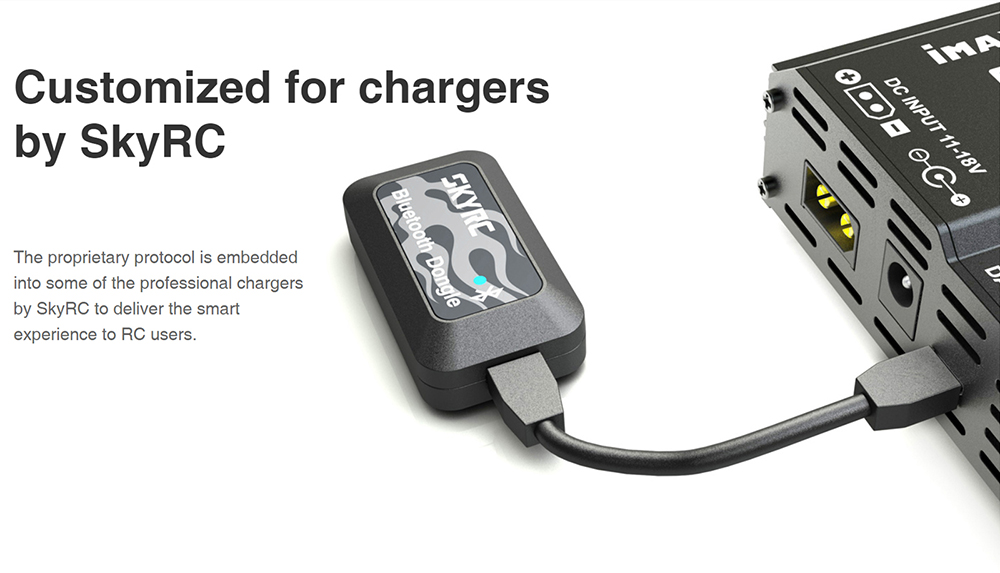 Thank you for purchasing SkyRC Bluetooth Dongle (SK-600135). Bluetooth Dongle lets you establish a connection between the SkyRC gadget and your smartphone to control and monitor the device via the app.