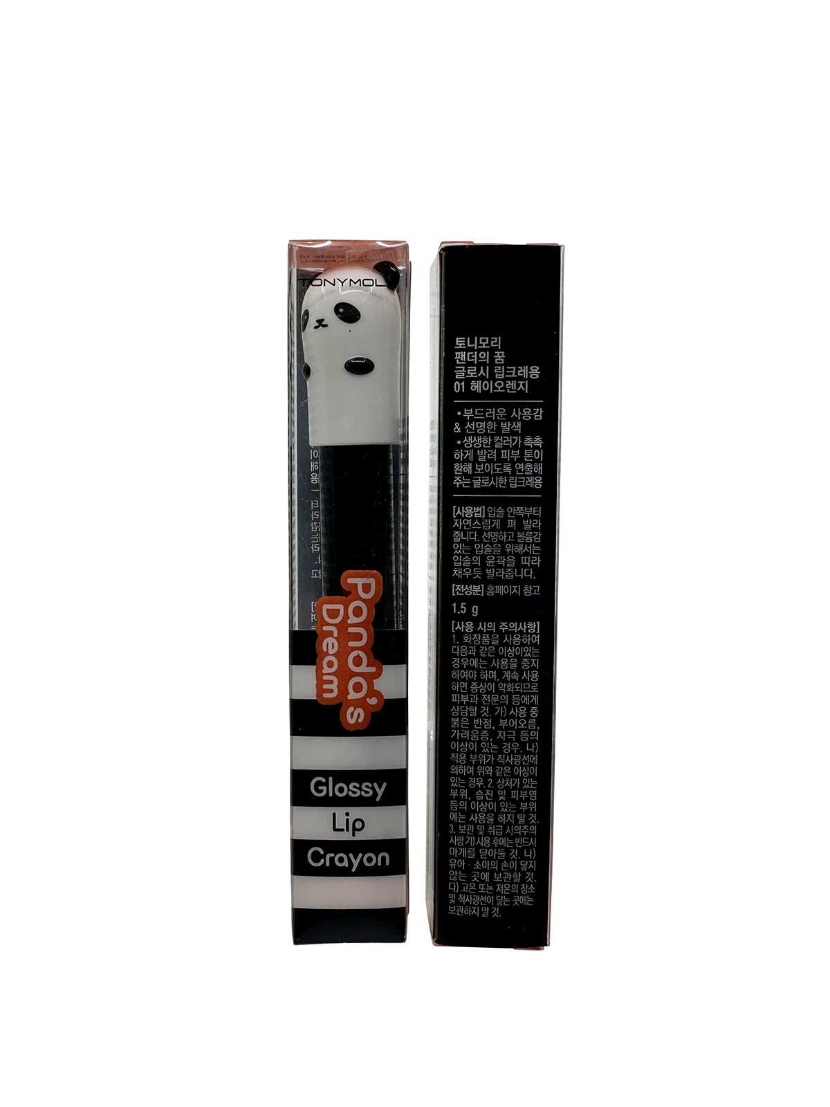 TonyMoly Panda�s Dream Glossy Lip Crayon 01 Hey Orange Set of 2 is a fun and nourishing lip gloss. High pigmented color eaves your lips looking amazing, while super moisturizing formula leaves them protected from dryness. Formulated in the perfect cream formula that is a great combination of gloss and balm for ultra comfort. Made with the perfect combination of antioxidants and natural oils. Comes packaged in a charming panda case. Provides hydration and nourishment to the lips, helping to keep them moisturized and soft. The gloss itself is infused with nourishing ingredients such as fruit extracts, vitamins, and botanical oils, which help to replenish moisture and protect the lips from dryness. How to use: apply directly onto lips using your finger. The gloss is smooth and creamy, allowing for easy application and a comfortable feel on the lips. It can be used throughout the day, as needed, to maintain lip hydration.