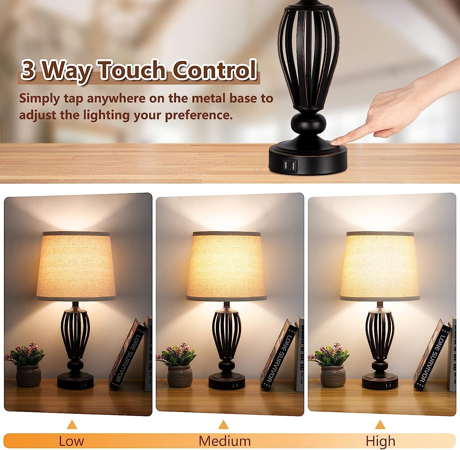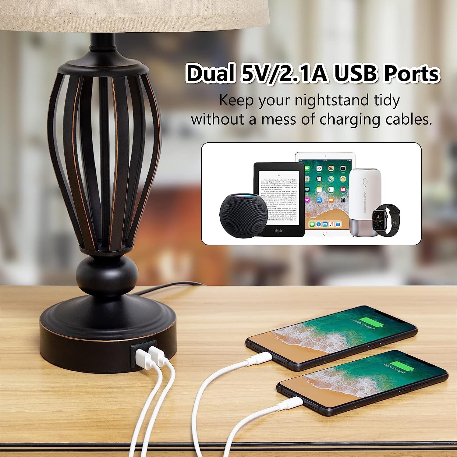 Looking for a stylish and functional lamp for your bedside? Our Bedside Lamp is the perfect choice. With its unique and elegant appearance, it adds a romantic touch to your household atmosphere while taking up minimal space on your desk. The noiseless 3 way dimmable feature allows you to easily adjust the brightness for various applications, without disturbing anyone who has a light sleeping. Plus, with dual convenient USB ports, you can charge your electronic devices simultaneously, keeping your desk neat and tidy. The modern farmhouse design with gold highlights adds a touch of retro mid-century charm to your home. And with the included energy-saving LED bulb, you'll save on your electric bill while enjoying stable and adequate light. Don't settle for ordinary bedside lamps - choose our Bedside Lamp for style, functionality, and convenience.