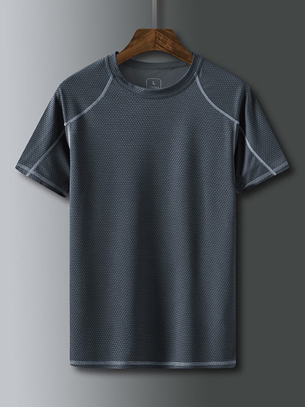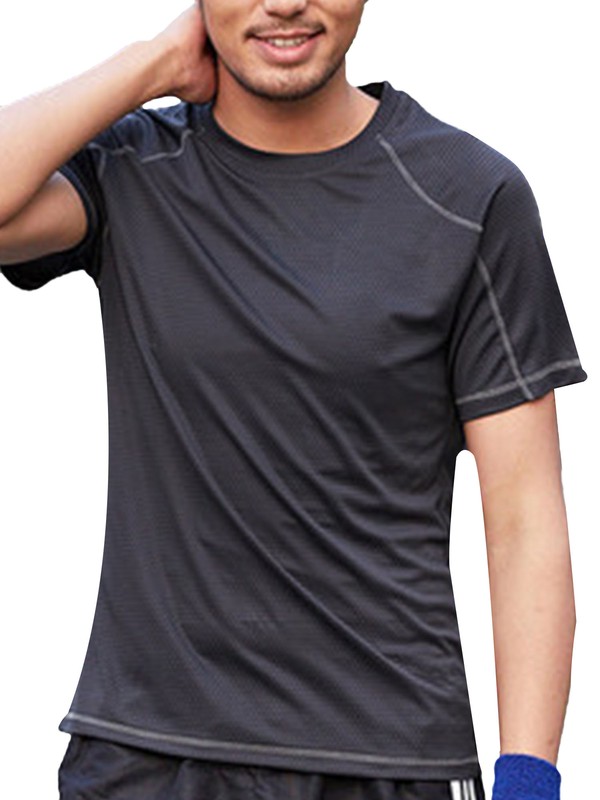 Men Cotton Breathable Solid Color Mock Neck Short Sleeve Stretchy Sport Top Fitness Training Top.