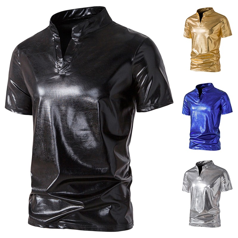 Solid color, mock neck, tight-fitting short sleeve T-shirt, show off your robust muscle.