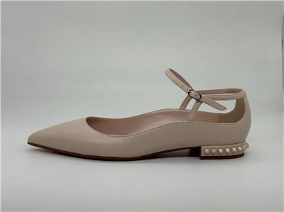 - Flat heel with tonal spike trim