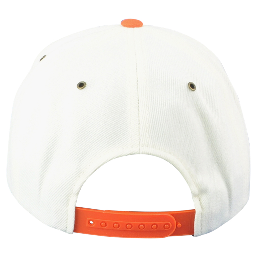 Description: Show the love for your team with hat. This Zephyr hat features a 3D high definition (raised) team logo embroidered on front panel. Zephyr logo embroidered on the side. This hat contains adjustable snapback closure. Color cream and orange. Material 100% Polyester. Flat Bill. Authentic Merchandise. Officially Licensed Product. Brand new item with tags.