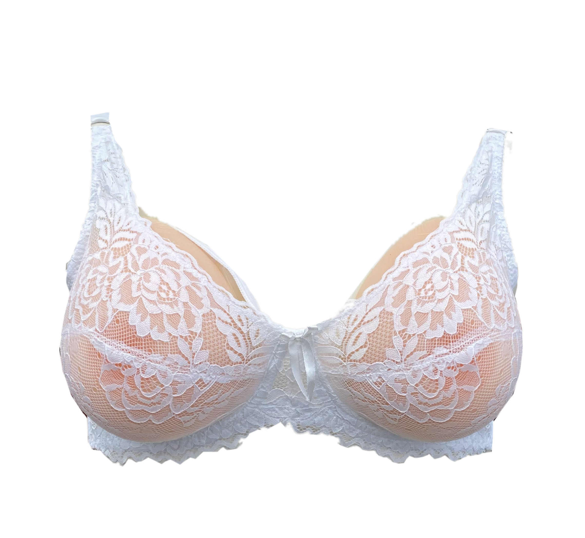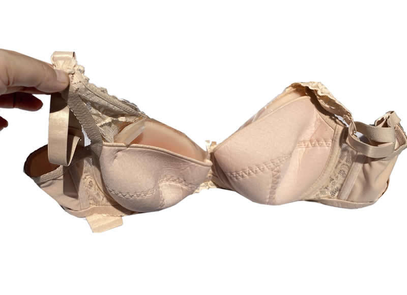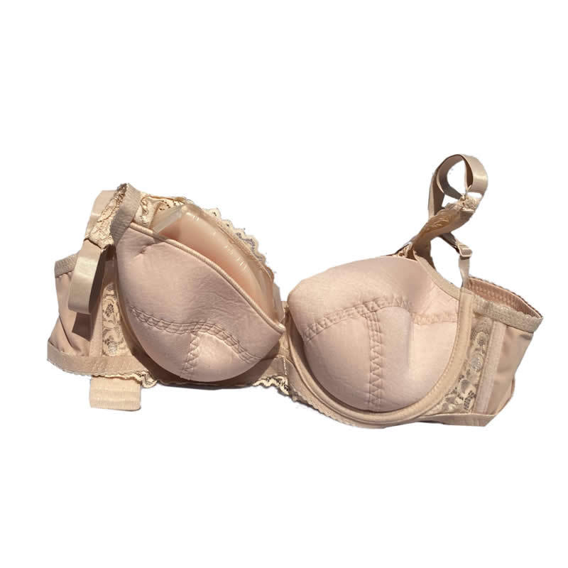 A special purposely made pocket bra, to show the silicone breast forms/prosthesis for a natural look.