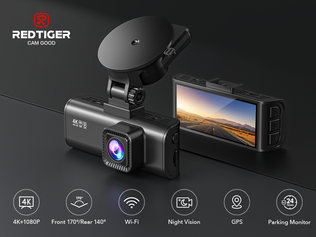 4K+1080P front and rear dual recording - REDTIGER brings you a dual dash cam that can record videos up to Ultra HD 4K+1080P resolution. It helps you read key details like road signs, license plates, etc. while driving.