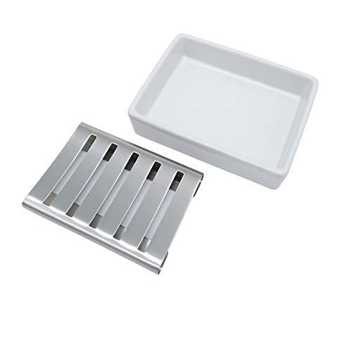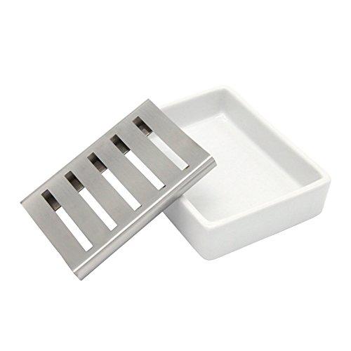 Do you still worry where you can put the soap when taking a bath or washing hands? Using our soap dish can give you an amazing result. Then I will tell you the reason. The soap holder is made of stainless steel and premium ceramic, very sturdy and much longer service life than plastic. Dual-layer design easy to clean, and keep shower soap holder from slipping. Functional, these bar soap holder can be used for bathroom, kitchen, bathtub and counter top Elegant and generous design can make your life more comfortable. Take soap easily, the best choice for you. Size: 4.7 x x 1.1 inches Weight:11.6 ounces Package: 1 pcs soap holder