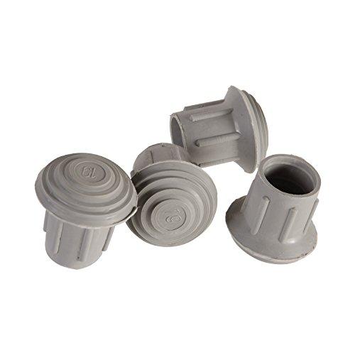DMI Rubber Cane and Walker TipsThese durable rubber tips make great replacements for your walker or cane and may even exceed the quality of the originals. These shock-absorbing tips are slip resistant and will give you great traction on most surfaces. They easily slip onto the ends of most canes, quad canes, walkers and commodes with a 1 inch shaft. You get 4 tips per package. Features Add more traction and shock absorption to your cane or walker by using these durable, skid-resistant rubber tips They work great as replacements for worn tips or to even surpass your original tips for slip resistance They easily slip onto the ends of most 1 inch canes, quad canes, walkers or commodes You get 4 tips per package Contains latex