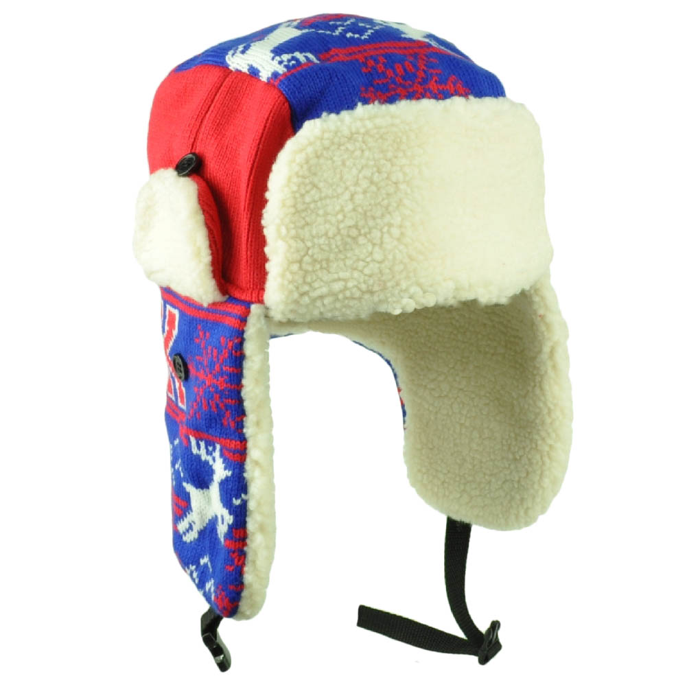 New York Trapper Aviator Knit Beanie Fleece Nordic Hat Ear Flap State Blue Red