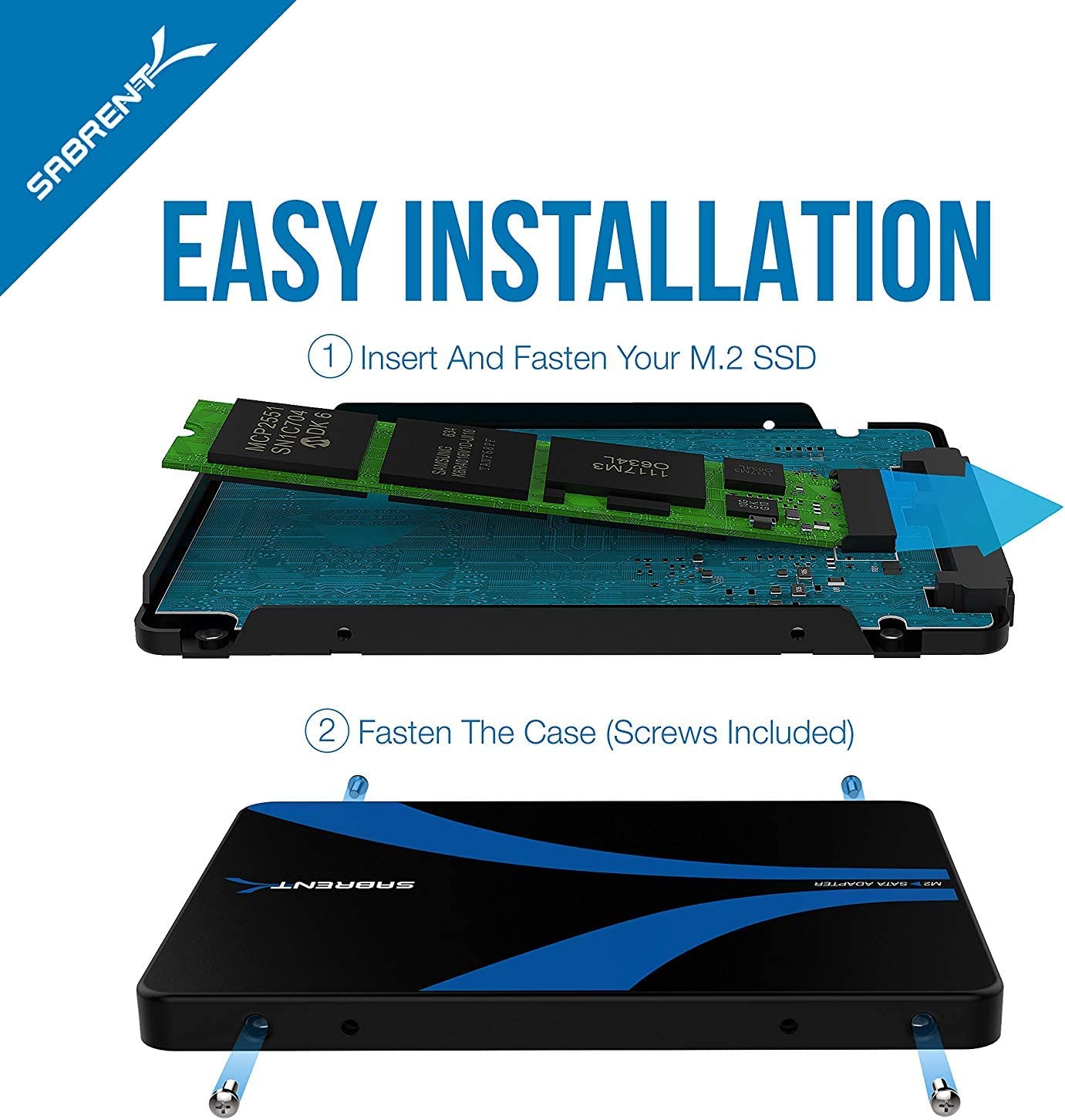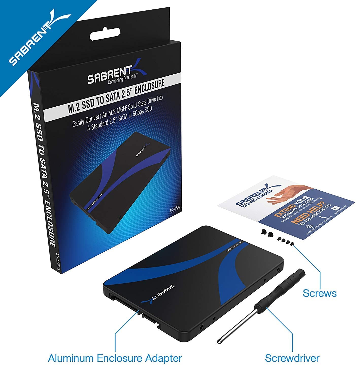 Description:There has never been an easier way to convert your M.2 SSD into a standard 2.5 SATA III SSD. The Sabrent EC-M2SA is the perfect solution to expand the connectivity of your M.2 drive in just a few easy steps! ? Enclosure provides added protection to your SSD drive. ? Maximize your performance. ? Easily convert an M.2 NGFF solid-state drive into a Standard 2.5in SATA III 6Gbps SSD. ? Compatible with M.2 NGFF SSD and SATA-enabled host devices such as Desktop & Laptop computer systems and Hot Swap 2.5 in SATA Bays. ? Support M.2 form factor: 22x30, 22x42, 22x60, 22x80. ? B-key M.2 SSD. ? Standard SATA 22pin connector. Directions: The EC-M2SA is a 2-part housing that interlocks and secures once your drive is inserted. With the housing apart: 1. Gently attach your M.2 drive into the housing and connect to the M.2 adapter. (show picture of connectors) 2. Once secure, connect the 2 housing pieces (show the housing being put together) 3. Secure the housing with the supplied screws (show screwing the housing together) 4. You are ready to go! Package Contents: ? Sabrent M.2 SSD. ? Screws + Screw Driver. ? User manual. Please Note: ? It doesn’t support M2. NGFF-PCI-E. ? The product does not contain SSD hard disk |