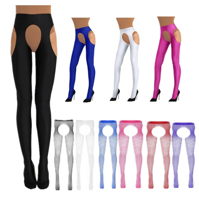 Womens See-through Floral Mesh Patchwork Pantyhose Crotchless/Regular Leggings.