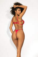 Classic boldness in faux leather. The underwire bra and adjustable thong create a timeless two-piece that is as structured as it is seductive.