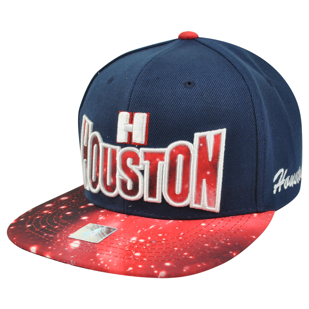 Houston H Town City Blue Galactic Sublimated Galaxy Flat Bill Snapback Hat Cap