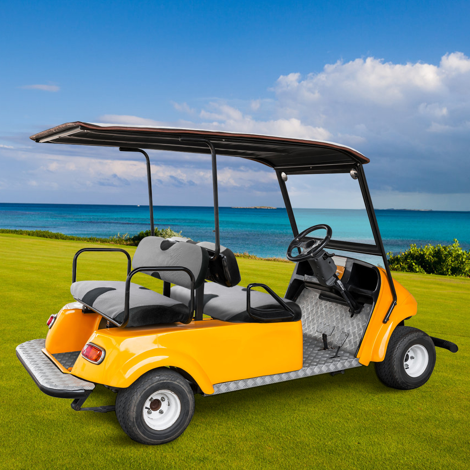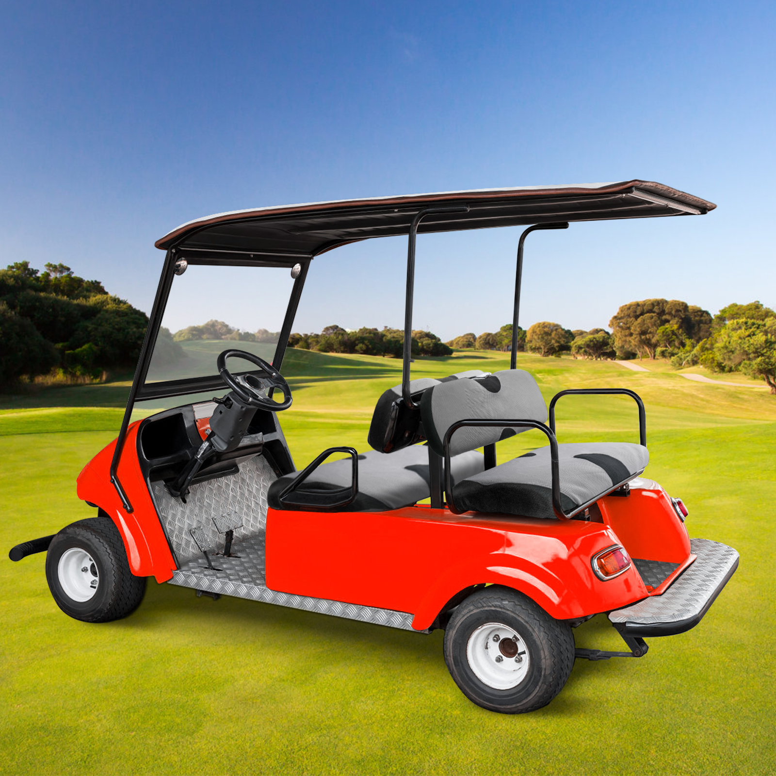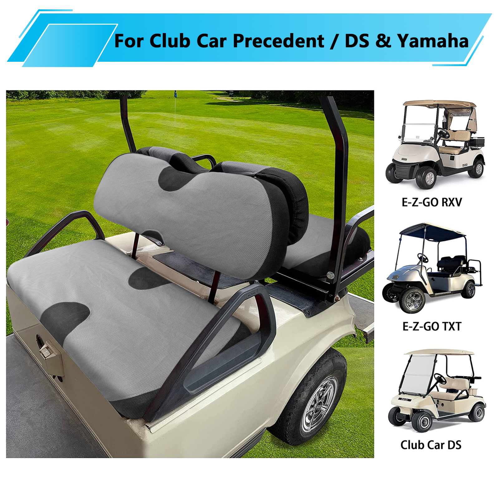 Fits most of EZGO TXT RXV & Standard Club Car DS & Yamaha 2 or 4 passenger golf carts, be sure to verify that your front seat size fits the seat cover by measuring, different brands have different seat sizes.