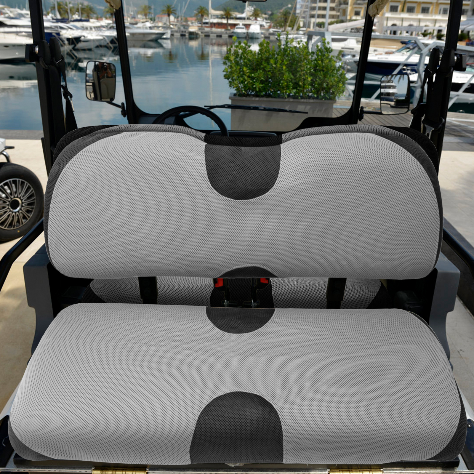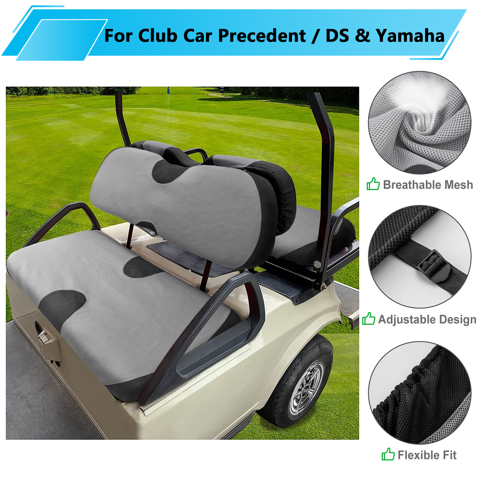 【Durable Stretchy Fabric】Golf cart seat covers are made from durable, comfortable breathable mesh cloth polyester for maximum comfort during your daily drive, it is universal for all seasons, easy to clean, machine washable, air dry.