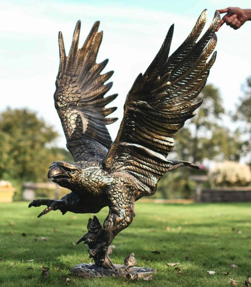 Deluxe Freestanding Cast Aluminium Golden Eagle & Fish Garden Sculpture