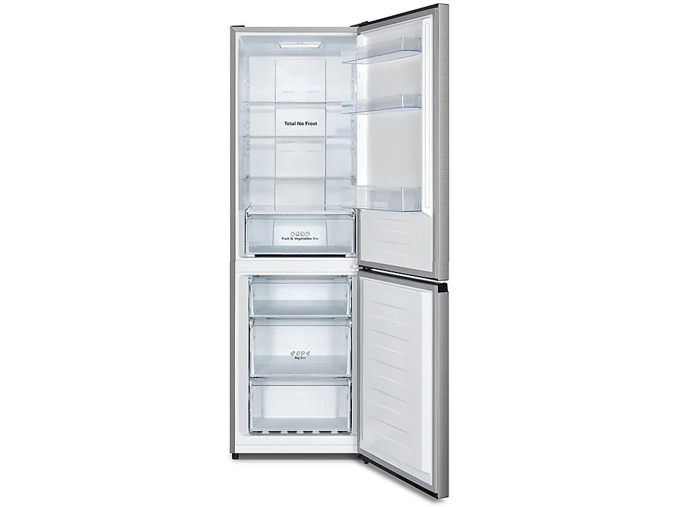 Il frigorifero combinato Hisense RB390N4CCD1 da 304 litri unisce tecnologia No Frost, Multi Air Flow e funzione Super Freeze per una conservazione ottimale e senza ghiaccio. Con display LED, porta reversibile e cassetto Fresh Zone, offre praticità e stile in un elegante colore inox. Silenzioso (35 dB) e a classe energetica D, è la scelta ideale per chi cerca efficienza e spazio in cucina. •Design porta 90°: Il design della porta a 90° di Hisense consente un accesso completo ai contenuti dei cassetti, permettendone l’apertura totale in questa posizione. Questa caratteristica è ideale per le cucine di piccole dimensioni, dove il frigorifero è posizionato in un angolo, accanto a una parete, un telaio di porta o un altro elettrodomestico.