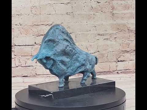 Introducing an exquisite animal bronze sculpture inspired by Pablo Picasso's modern art - the chubby abstract bull. This detailed artwork portrays the bull with a motive full of strength and fighting spirit, symbolizing victory against adversaries. The bull is also known as a symbol for increasing stock levels, making this sculpture a unique addition to any space. Crafted with utmost precision, the bronze cast is of the finest quality, capturing the intricate details of the original artwork. This impressive and fantastic art object was initially created for an exhibition, appealing to art enthusiasts and collectors of modern art.