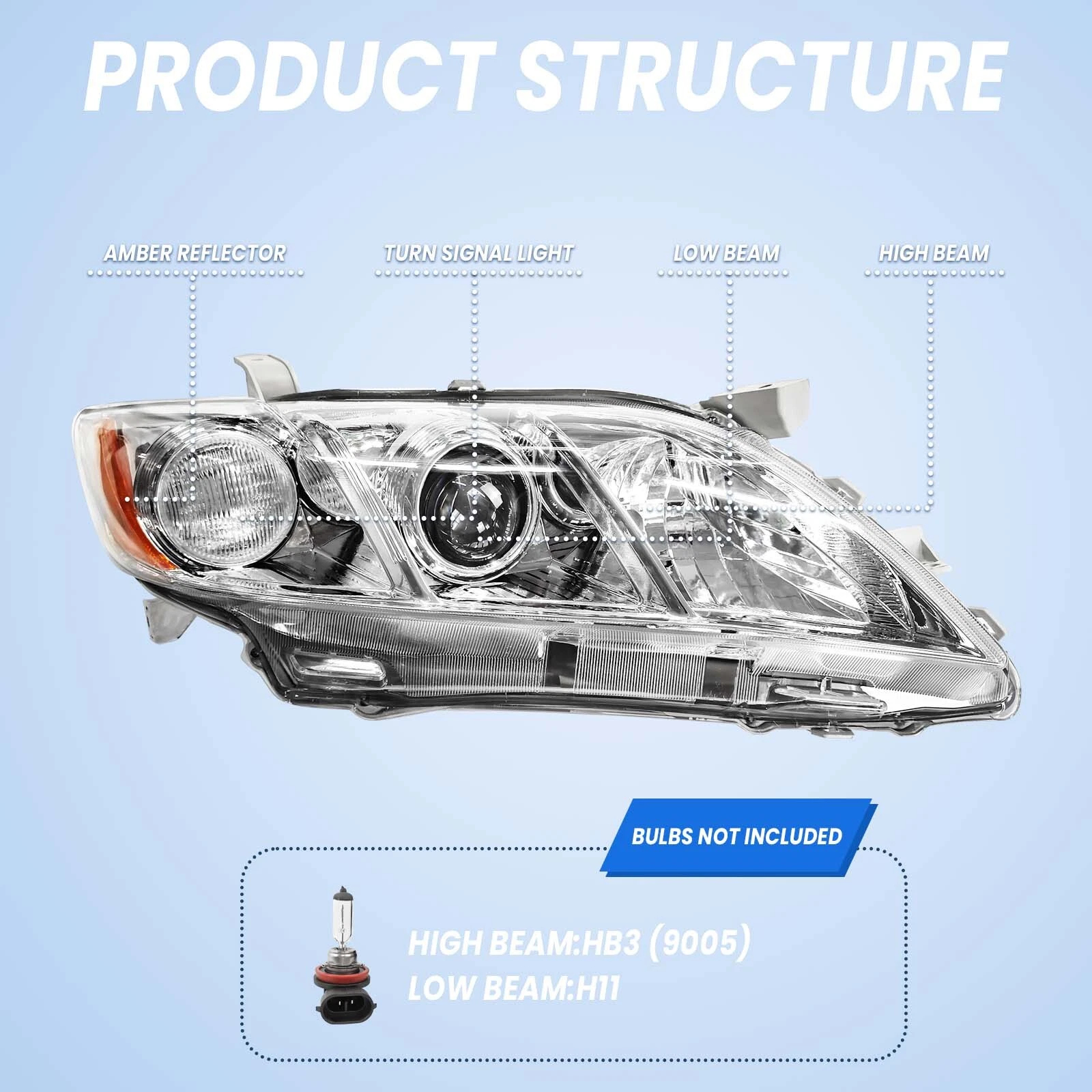 2. The product has strong durability, corrosion resistance, and rust resistance. The headlight lens adopts advanced ultraviolet coating to prevent scratches and cracks on the lens and prevent ultraviolet radiation.